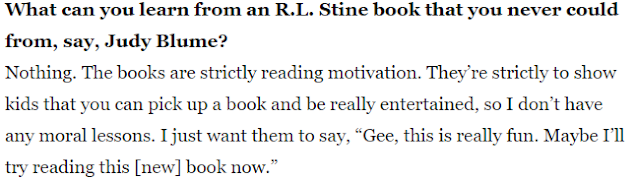 He's already smarter than your typical modern OldPub genre writer or editor, just based on that one statement. Who Knew that you didn't have to shove half-thought out propaganda in order to give people what they wanted? R. L. Stine. That's who. Oh, and his resulting series is one of the highest selling of all time. Funny how that works.